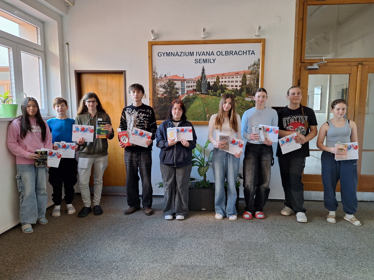 Ve čtvrtek 26. února převzalo 10 studentů knižní odměny za umístění na předních místech ve 4 kategoriích v olympiádě z anglického jazyka.
